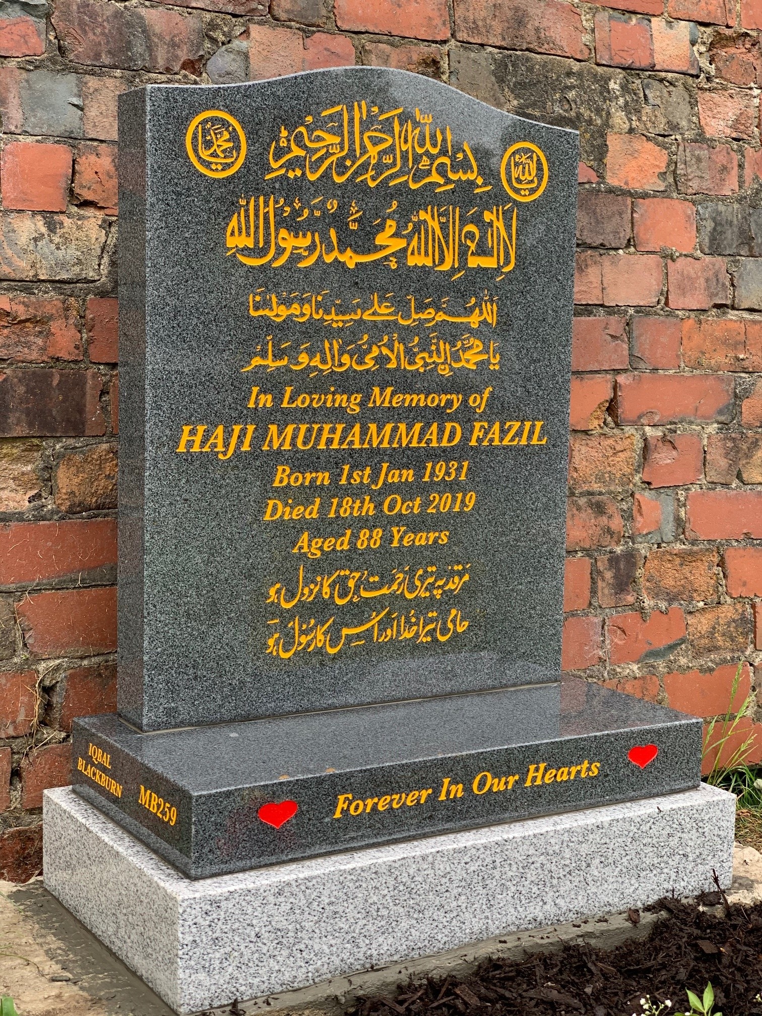 Standard Grey Headstone With Yellow Writing